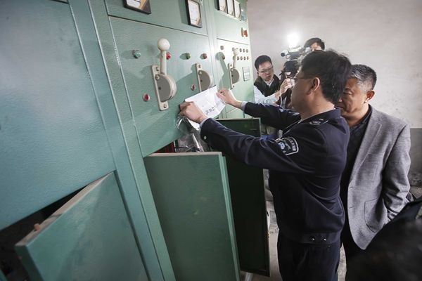 ??? 貼完封條,環(huán)保部門決定對(duì)企業(yè)拉閘斷電?!皩?duì)違法企業(yè)來說,斷了電,不關(guān)停也得關(guān)停。”供電公司找到企業(yè)的配電室,將車間對(duì)應(yīng)的電閘拉下,并由環(huán)保執(zhí)法人員貼上封條。