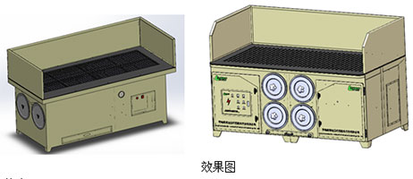 抽風工作臺進風口處設(shè)置一導流板,用于防止含塵直接沖擊濾芯,從而延長濾芯的使用壽命。