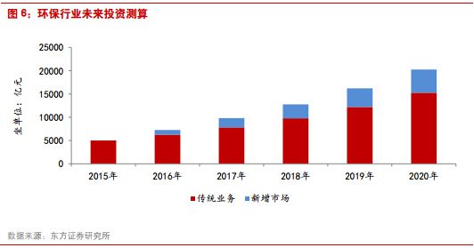 2.十三五進(jìn)入補(bǔ)舊賬階段,治理打開產(chǎn)業(yè)成長空間 霧霾、黑臭水體等嚴(yán)重環(huán)境問題的凸顯,致使我國不得不從利用降低環(huán)境成本來推動經(jīng)濟(jì)增長轉(zhuǎn)向環(huán)境成本回歸、力圖恢復(fù)生態(tài)環(huán)境的全面治理階段:十三五以及未來的10-20年,將圍繞氣十條、水十條、土十條三大領(lǐng)域的重點(diǎn)整治,投資主線從減排轉(zhuǎn)向治理:1)原有的減排力度要加大,煙氣治理提標(biāo)、污水處理提標(biāo)、固廢處理設(shè)施投入加大等;2)補(bǔ)舊賬:針對氣、水、土壤的修復(fù)工作。未來五年必須加大投資,才能保證環(huán)境質(zhì)量出現(xiàn)拐點(diǎn)。 利用我們上市公司業(yè)務(wù)模塊模型來分析,進(jìn)入治理階段環(huán)保產(chǎn)業(yè)的投資將全面升級:原有減排產(chǎn)業(yè)繼續(xù)保持30%左右的高增長,黑臭水體、海綿城市、土壤修復(fù)領(lǐng)域給行業(yè)帶來巨大增量。從我們的測算看,“十三五”,水、氣、固廢三大領(lǐng)域的原有業(yè)務(wù)模式將繼續(xù)保持20-30%的增速,而水環(huán)境、海綿城市、土壤修復(fù)將帶動1.5-2萬億的投資,年投入3000-4000億元為環(huán)保投入增量。加上傳統(tǒng)業(yè)務(wù)15年環(huán)保投資體量5000億的基礎(chǔ)上每年保持25%的增長,環(huán)保行業(yè)年投資體量將從4000-5000億上升到1-1.5萬億。因此,綜合治理打開環(huán)保產(chǎn)業(yè)投資空間,未來的大公司將圍繞該領(lǐng)域產(chǎn)生。 上市公司業(yè)務(wù)收入結(jié)構(gòu)將發(fā)生變化,水環(huán)境、土壤修復(fù)相關(guān)業(yè)務(wù)占比將迅速上升。由于對融資能力、公司項(xiàng)目執(zhí)行能力要求更高,上市公司產(chǎn)業(yè)市場份額將上升。保守估計(jì),到十三五末,環(huán)保產(chǎn)業(yè)真實(shí)年投入達(dá)到1.5萬億,預(yù)計(jì)上市公司收入體量有望達(dá)到5000億以上。