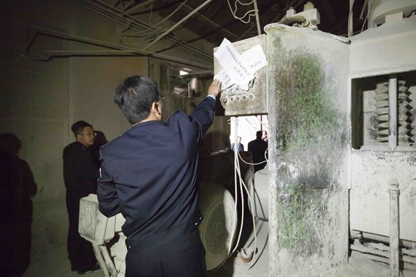 ??? 貼完封條,環(huán)保部門決定對(duì)企業(yè)拉閘斷電?!皩?duì)違法企業(yè)來說,斷了電,不關(guān)停也得關(guān)停?!惫╇姽菊业狡髽I(yè)的配電室,將車間對(duì)應(yīng)的電閘拉下,并由環(huán)保執(zhí)法人員貼上封條。