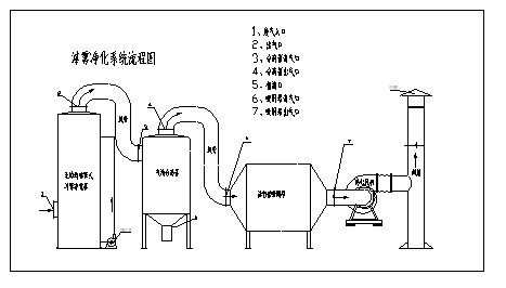 噴漆廢氣產(chǎn)生于工件涂裝的噴漆工作臺(tái),高壓空氣噴射出的油漆大部分留在工件上,其它的隨著廢氣帶出,形成漆霧粉塵。這些粉塵含量不高,粒徑較小,絕大部分在10μm以下,塔體外部的漆霧在風(fēng)機(jī)的吸力下進(jìn)入本無(wú)填料噴霧式漆霧凈化塔,氣體經(jīng)塔體內(nèi)的氣體分布器分布后向塔內(nèi)上方行走,在行走的過(guò)程中,遇到多級(jí)噴淋洗滌的凈化液,漆霧與液體進(jìn)行完全飽和接觸,顆粒狀塵霧被水帶走進(jìn)入貯液槽,并由水泵抽走,余下的干凈尾氣通過(guò)網(wǎng)狀過(guò)濾器過(guò)濾后,再進(jìn)入下一組多級(jí)噴淋洗滌工序,經(jīng)再次多級(jí)噴淋洗滌處理,和網(wǎng)狀超細(xì)過(guò)濾器過(guò)濾后余下的空氣排出。